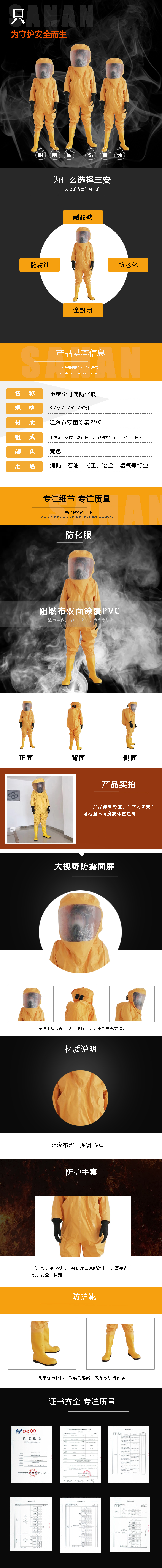 ●首先按正壓式消防空氣呼吸器說明書要求佩戴空氣呼吸器。 ●將防化服密封拉鏈拉開,先伸入右腳,再伸入左腳,將防化服拉至半腰,然后將背囊罩上空氣呼吸器。 ●將供給閥的快速接頭插入正壓式消防空氣呼吸器的插座上,打開氣